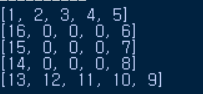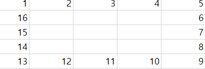 따라서 n=5일 때(5x5의 달팽이 배열)를 가정하여보면, 다음과 같은 코드가 됨을 알 수 있습니다.